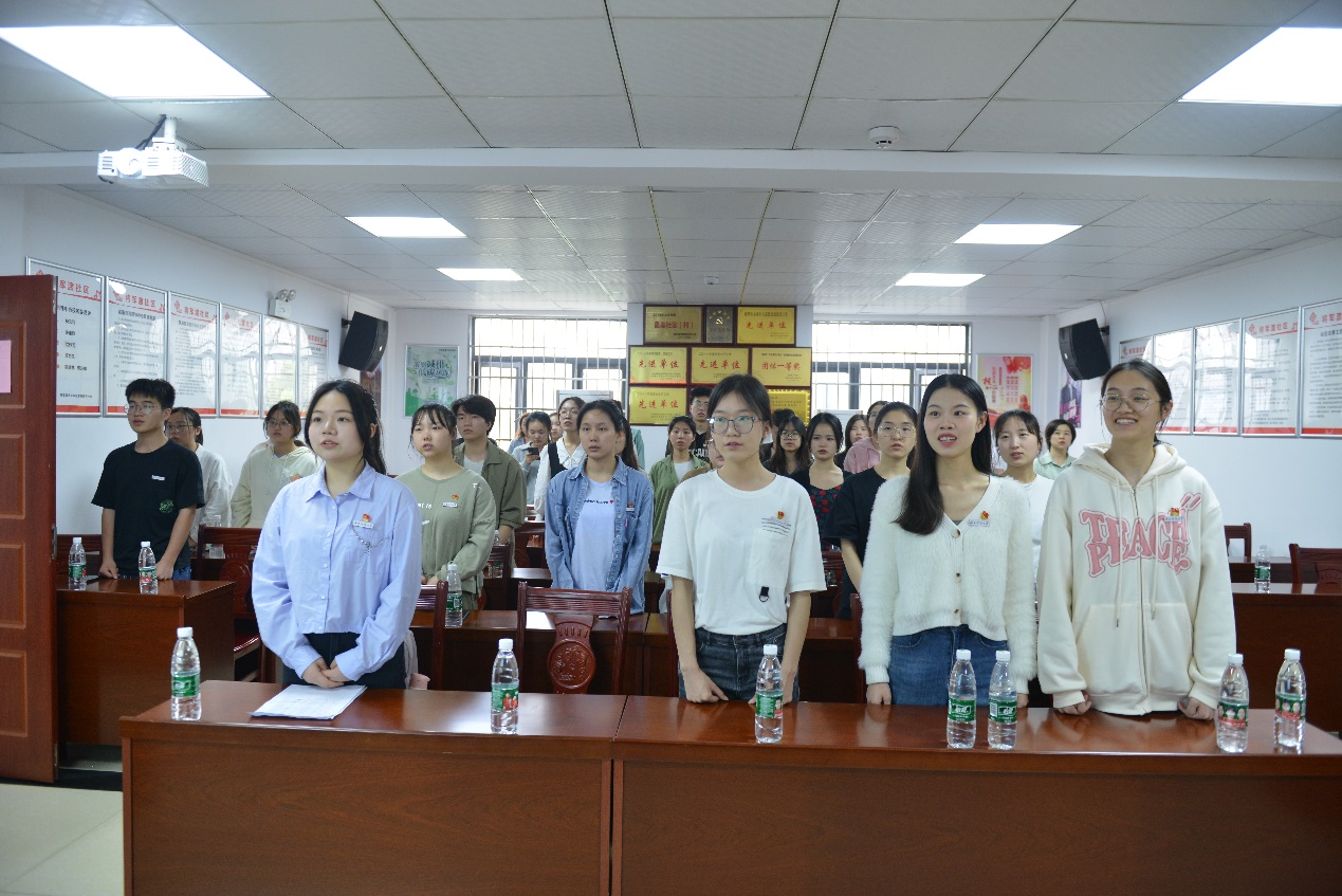 大会在庄严的《国际歌》中拉开序幕。新发展党员唐超娜宣读入党宣誓名单并带领新发展党员宣誓。所有同志举起右手并握拳,面向鲜艳的党旗进行庄严宣誓,向党组织郑重表明自己为党奋斗终身、将誓词付诸行动的决心。