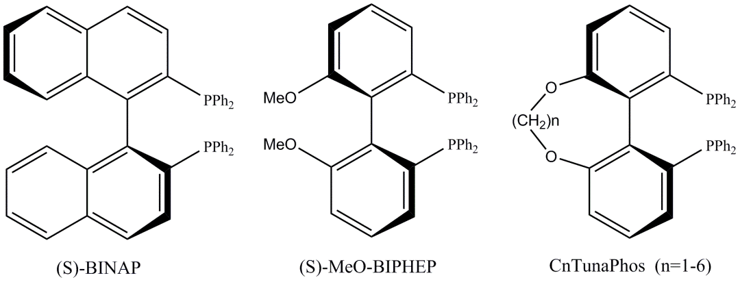 近年来,轴手性双膦配体在液-液萃取领域展现了良好的手性识别性能,如 (S)-BINAP和(S)-MeO-BIPHEP与金属离子络合后,对氨基酸和扁桃酸外消旋体均具有良好的拆分能力。在不对称催化领域,为提高轴手性配体的立体选择性,研究者们探究了电子因素和空间因素对配体立体选择性的影响,其中尤以两个芳环间二面角大小对反应立体选择性的影响研究更为细致深入。轴手性联苯双膦配体结构中的两个苯环可自由旋转形成不同的二面角,在手性识别底物过程中配体可能缺乏足够的刚性,因而导致立体选择性降低。本课题组参照张绪穆教授的方法制备了具有不同二面角的配体(CnTunaPhos, n=1-6),以苯丙氨酸、高苯丙氨酸、3-氯-苯甘氨酸、4-硝基-苯丙氨酸、扁桃酸和2-氯-扁桃酸为底物评价了二面角对配体手性识别能力的影响,结果表明通过调节配体二面角可有效提高配体的手性识别能力。