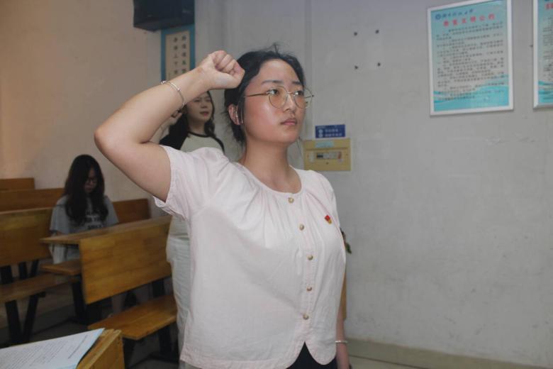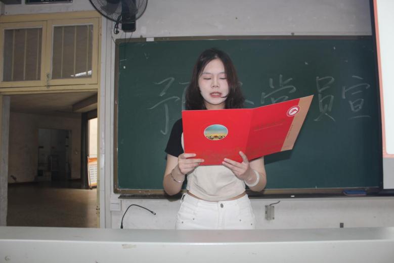 在正式党员代表赵孟然同志的带领下,全体预备党员面向鲜红党旗,紧握右拳,庄严宣誓:“我志愿加入中国共产党……”。铿锵有力的誓言响彻会场,表达了新党员对党的无限忠诚和为共产主义事业奋斗终身的坚定信念。