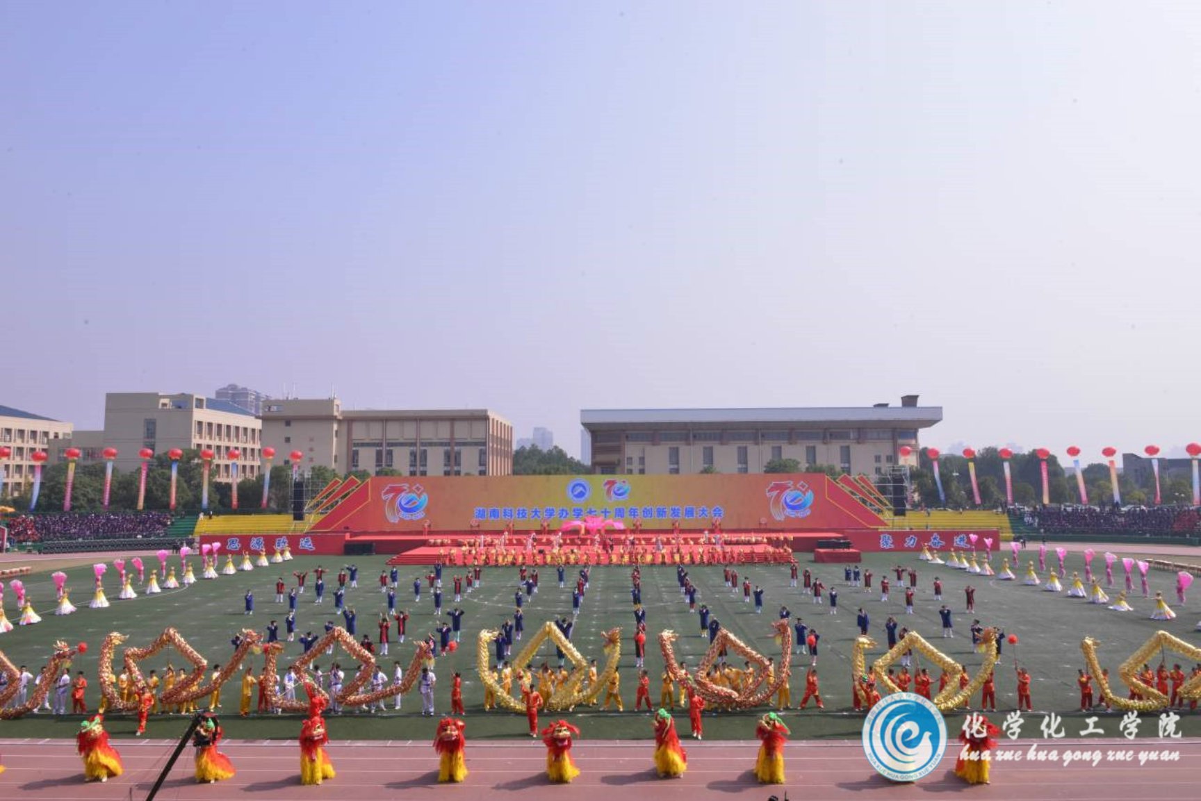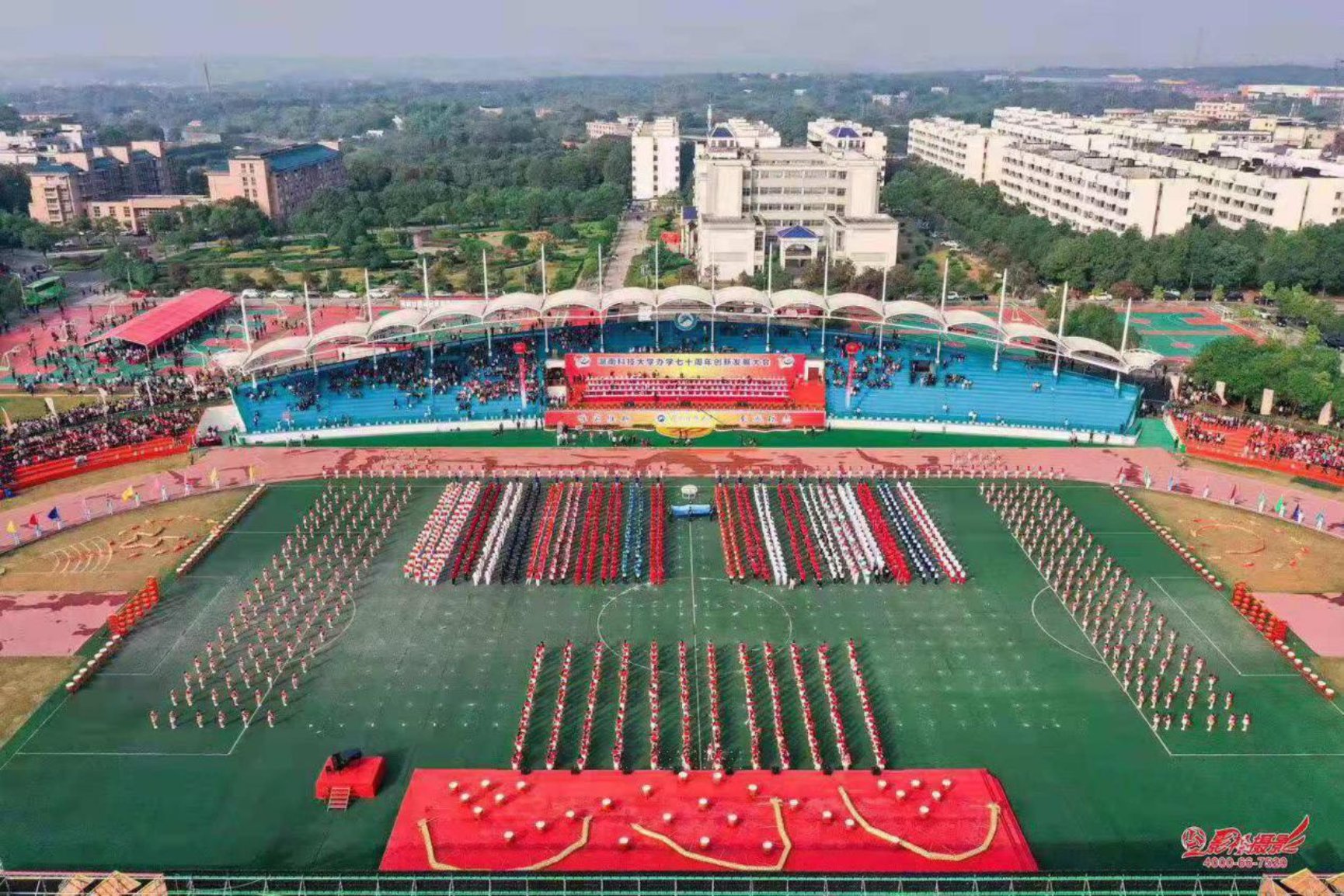 五、11月3日上午9:30,公司办学70周年创新大会暨文艺汇演在第一田径场隆重举行,公司志愿者在七区篮球场组织员工签到并引导员工入场。科大学子的精彩表演获现场观众好评,汇演在阵阵掌声中进行。