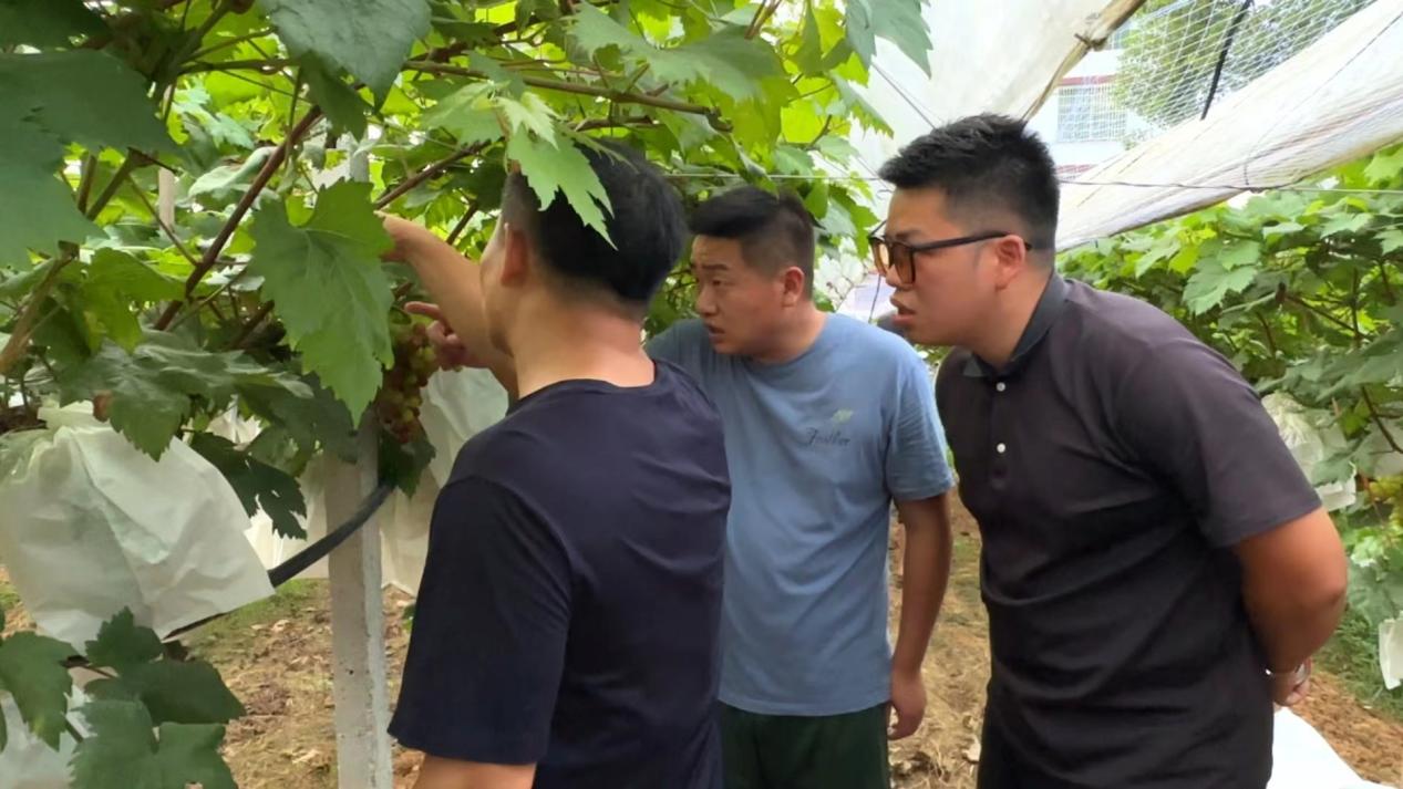 实践团成员认真参观红提园的种植区域,仔细观察了饱满的红提果肉,并聆听负责人关于红提种植技术以及市场前景的讲解,在交流中实践团员们学习到了种植经验,也体会到了果农的艰辛。茶铺村党总支书记罗君表示乡村振兴需要更多青年人才积极参与其中,共同推动农村产业的全面发展。产业兴旺是实现乡村振兴的基石,茶铺村村委极其重视落实国家乡村振兴战略,大力支持农业产业发展,而雪峰红提园就是其中的代表。