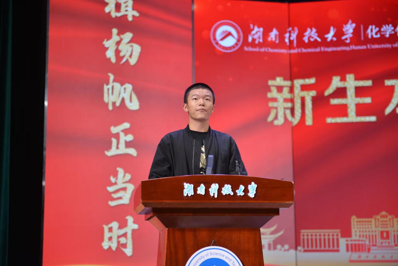 随后,教师代表化工副系主任黄小平讲话。他向所有新生分享了在学习和生活中的几点体会。他提到,作为一名大学新生,要转变角色,敢于击退挫折,学会独立自主,学会自我约束。同时要明确目标,结合自己的兴趣确立目标,才能成为推动学习、深入钻研、克服困难的助力。他还强调要奋勇拼搏,有持久的恒心,在学习生活中要多次尝试,才会有所成就。