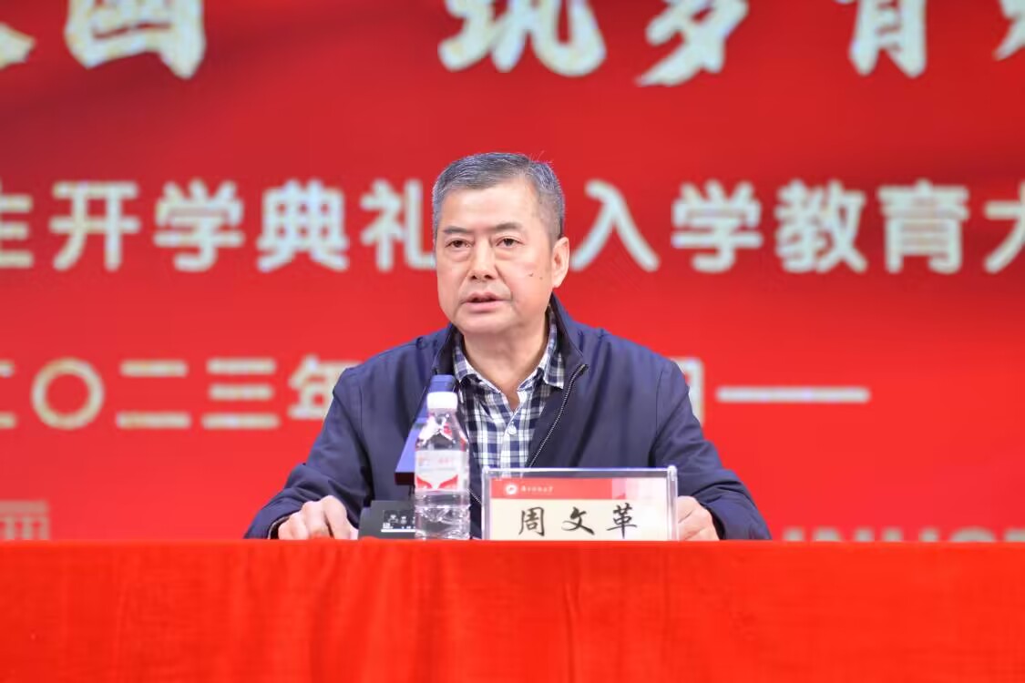 23级本科新生代表刘文轩发言。他分享到,经过几天的课程学习,他逐渐了解如何在大学中学习,如何自我分析并进行正确的人生定位,如何自我约束,如何合理安排时间,如何制定落实目标。他还提到,大学里要积极进取,不能固步自封,也希望同学们能尽快适应老员工活,树立奋斗目标,珍惜时光,不断开拓视野,为今后打下坚实基础。