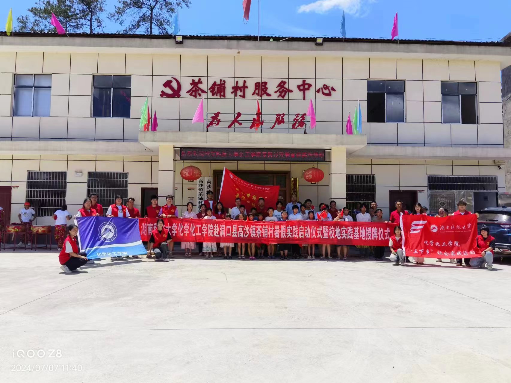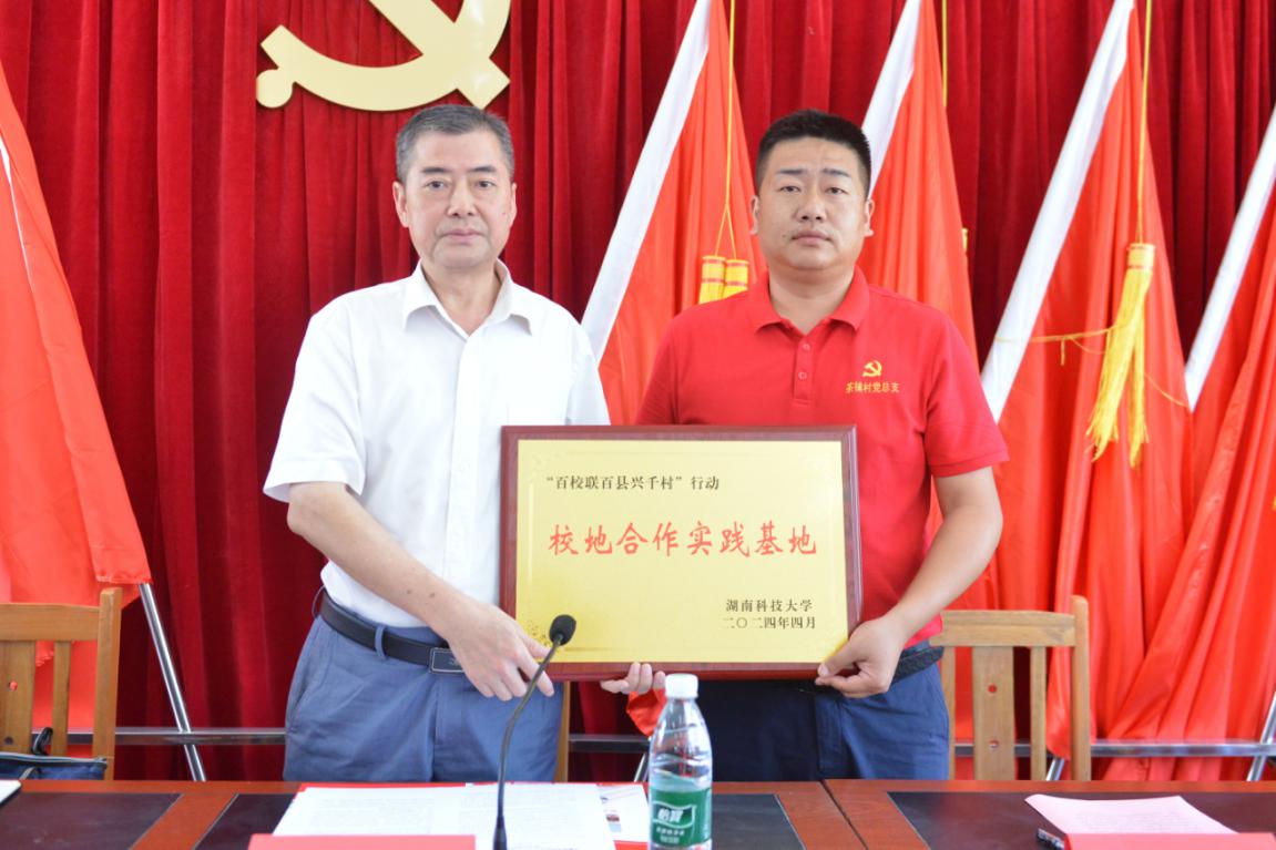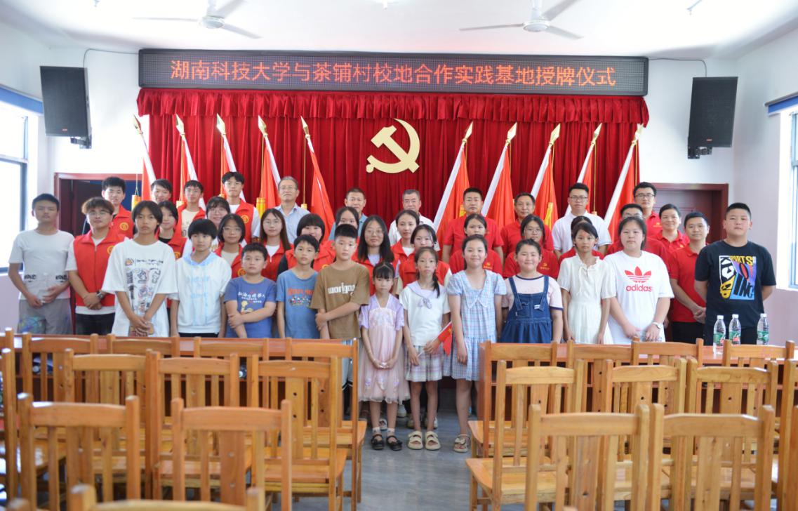 7月7日中午,英国be365官网暑假实践启动仪式暨校地合作实践基地授牌仪式在邵阳市洞口县高沙镇茶铺村党员活动室成功举办。洞口县高沙镇党委副书记曾军、化学化工公司党委书记周文革、茶铺村党总支书记罗君及村委会干部、科技小院指导老师薛建荣、“小小梦想家”实践团指导老师王彪出席本次仪式。
