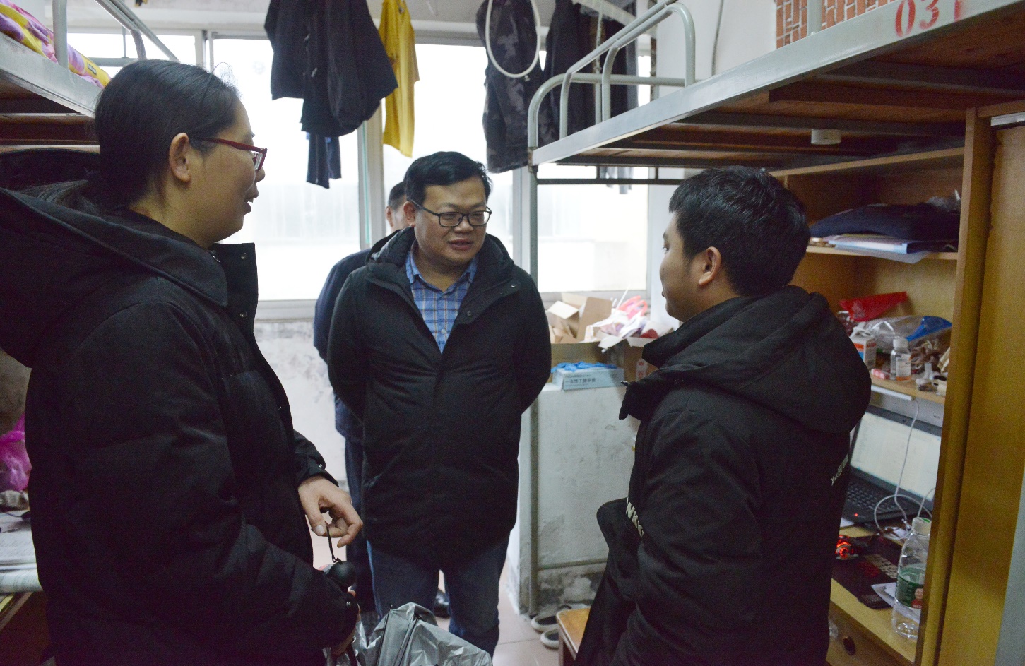 新学期开学之际,为更好地了解员工的生活状况、思想动态与学业问题,给予同学们新学期的问候与关怀,2月12号下午,英国be365官网经理周虎、公司党委书记周文革、公司党委副书记周小明带领公司全体辅导员、班主任代表开展了寝室走访工作。