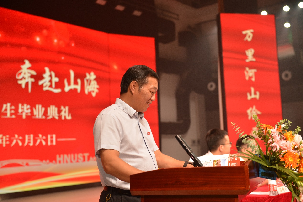 谭支军先生为毕业生们送上祝福。他指出,青年学子不仅要掌握深厚的理论知识,更要积极参与社会实践,积累工作经验,实现为家争彩、为校争光、为国创荣耀的人生目标。