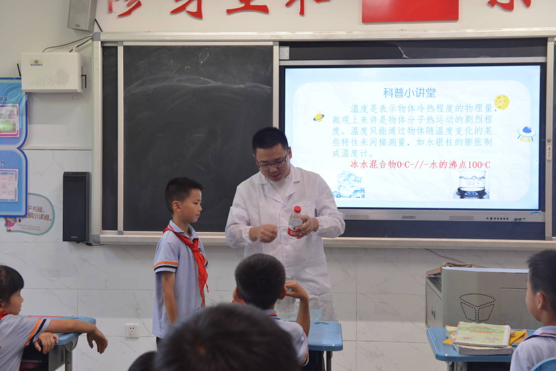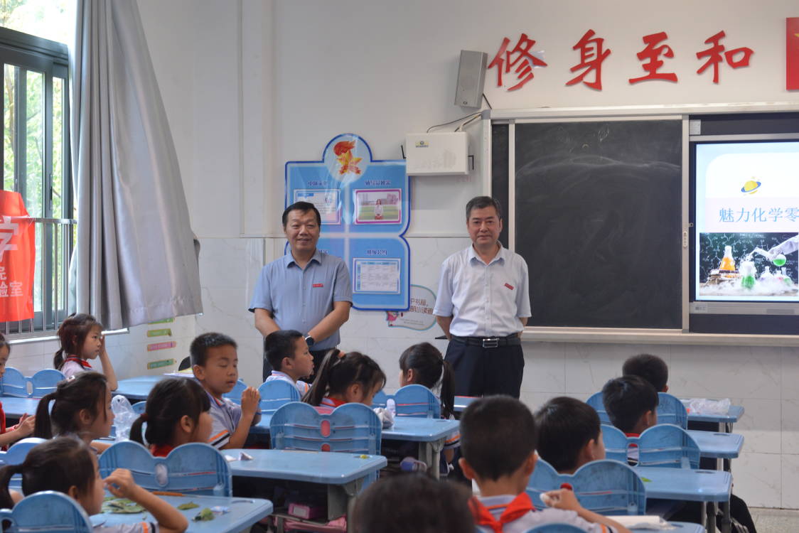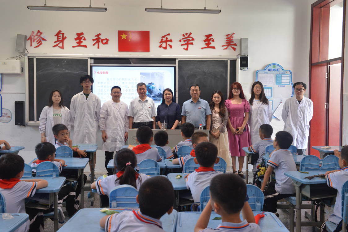 为深进一步增强学科专业服务社会能力,提高孩子们科学知识学习兴趣,6月7日下午,英国be365官网师生志愿者来到九华和平科大小学2103班开展了“魅力化学零距离,科普活动进小学”科普活动。化学化工公司党委书记周文革、党委副书记周小明、九华和平科大小学李莉董事长和2013班宋倩老师等莅临活动现场,曹佳民副教授带队进行指导。
