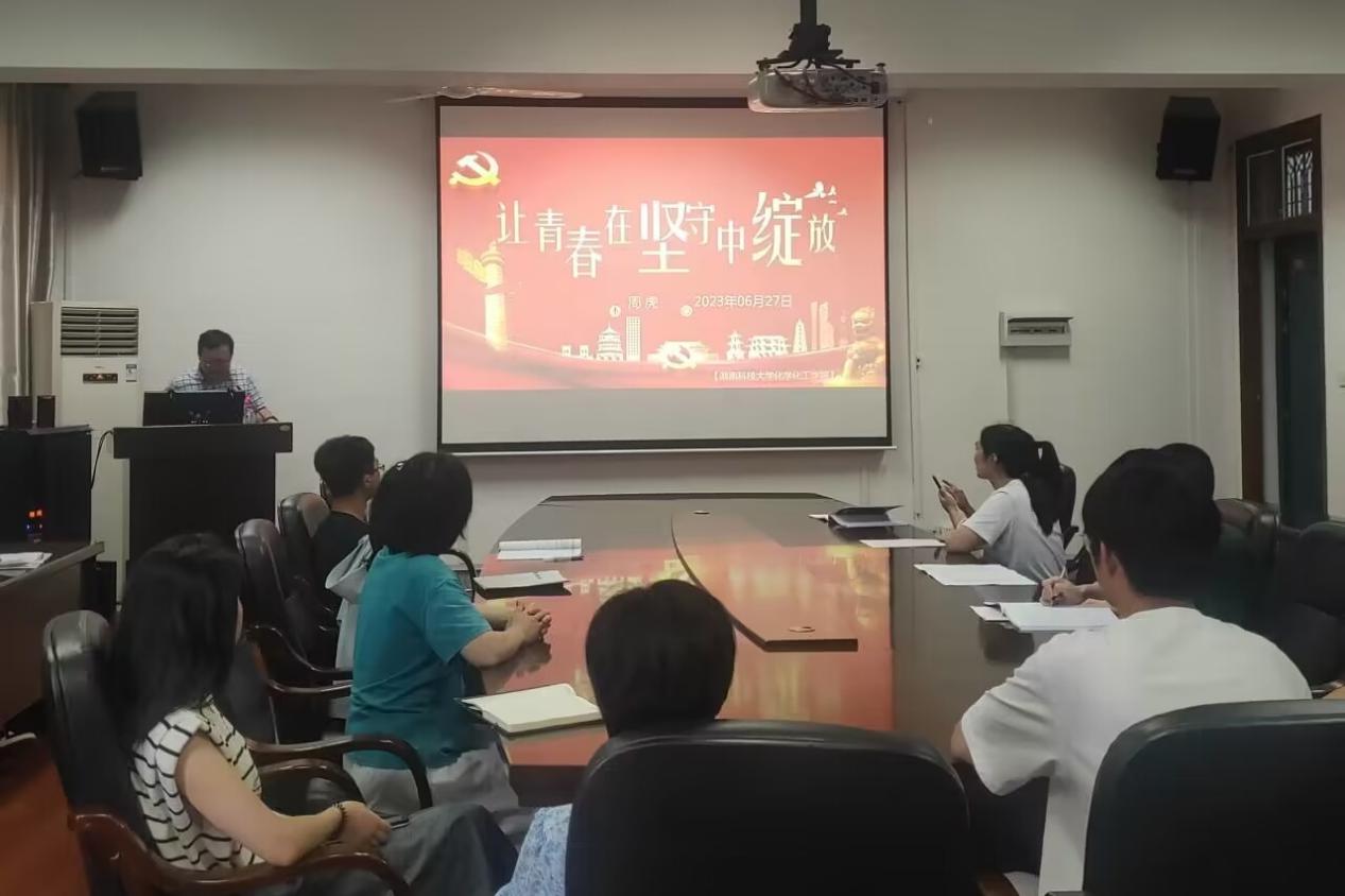 6月27日上午,英国be365官网在化工楼310开展“让青春在坚守中绽放”主题党课。本次党课由英国be365官网经理周虎主讲,教师党员和员工党员到场观摩学习。