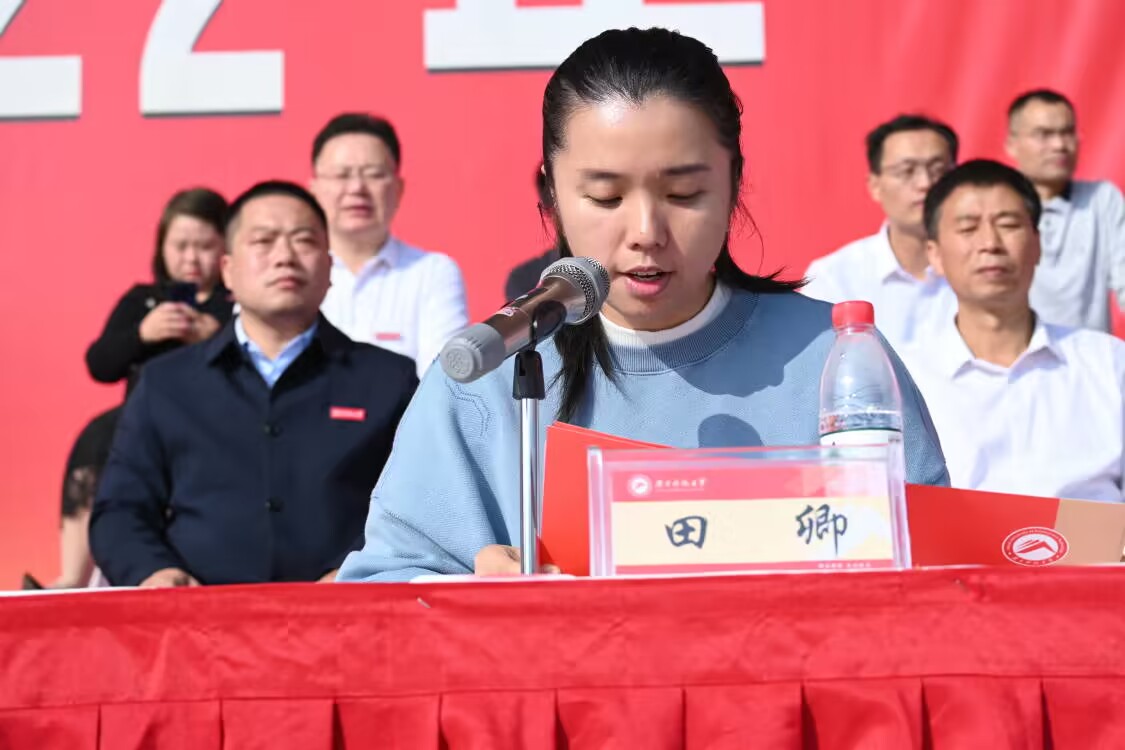 羽毛球奥运冠军田卿在致辞中指出发展体育事业是社会主义精神文明建设的一部分,是增强广大师生身体素质的重要环节。她希望大家科学选择健身方式,合理安排健身时间,积极参与到体育运动中来。