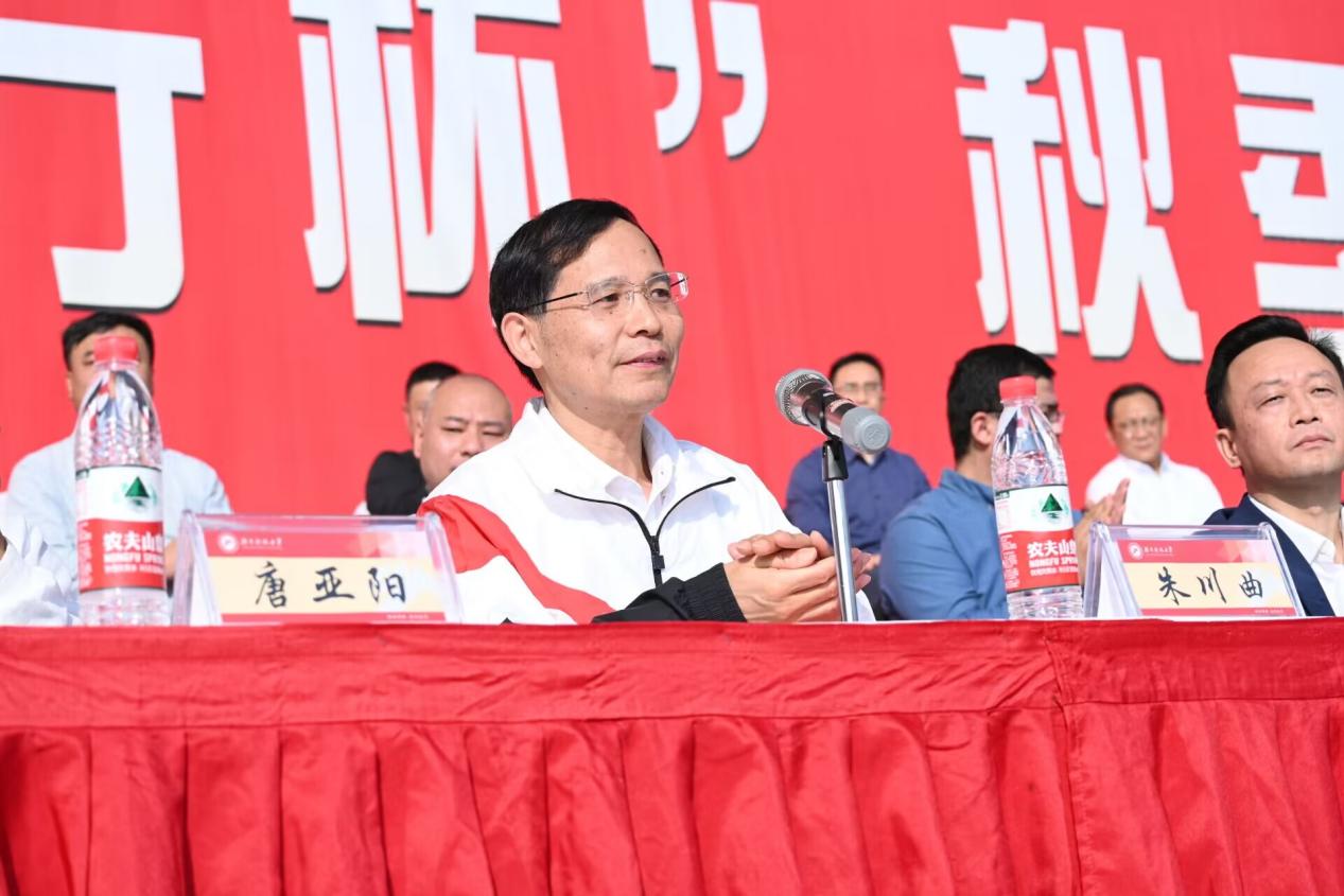 中国农业银行股份有限公司湘潭分行党委委员、副行长周凯歌鼓励运动员奋勇拼搏,以昂扬的斗志在赛场上展现自我,并预祝本届运动会圆满成功。