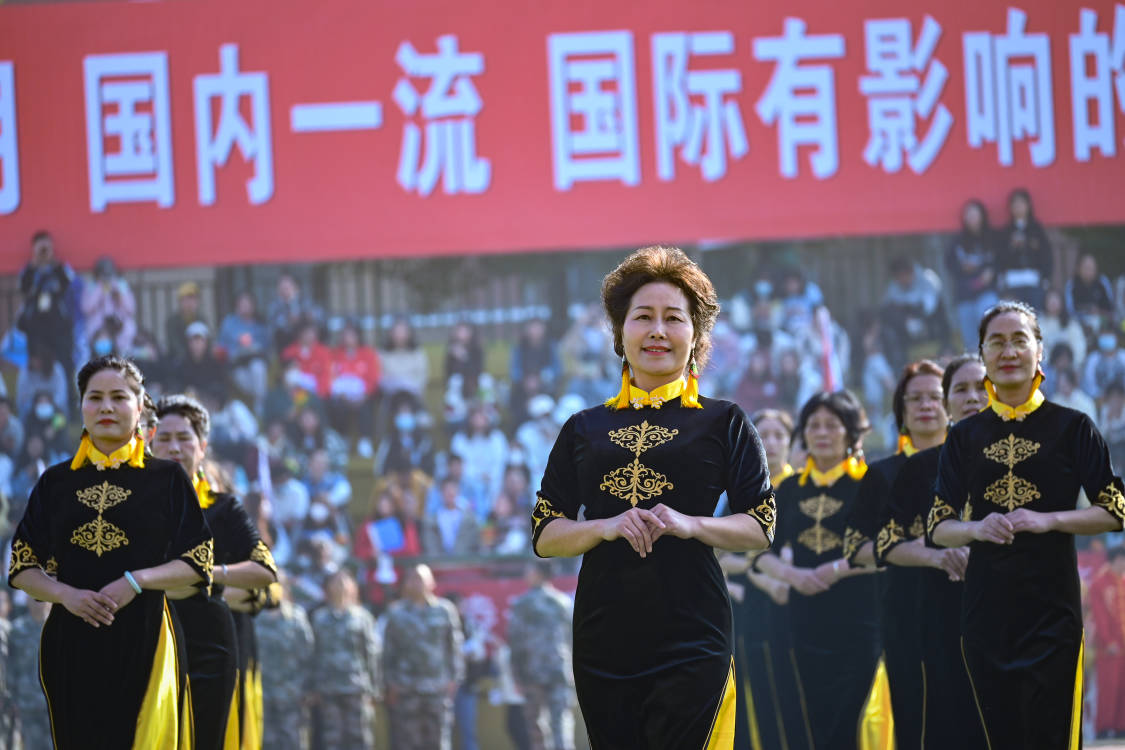教职工旗袍队的表演,军训团和龙狮表演以及精彩的民族舞蹈成为开幕式上一道道靓丽的风景线,赢得了在场观众的阵阵掌声和喝彩声。