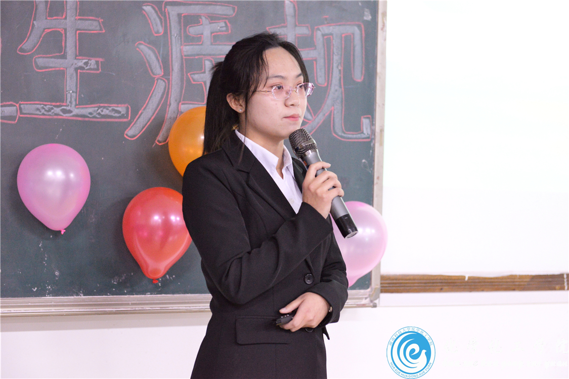 本次大赛分为“自我规划文稿演示”和“现场评委提问”两个环节。在主持人介绍完评分细则与比赛规则后,8位参赛选手依次上台从“个人分析”、“职业定位”、“环境分析”、“实施计划”、“评估调整”等多个方面展示自己的职业生涯规划书。为鼓舞选手们的比赛信心、调动现场气氛,易书记上台发言:“不论是什么规划都有可能遇到难题需要去临时调整,我们要有这个能力。在和平时期的我们,人生是可以做出有效规划的,我们要把握这个机会,多听听学长学姐们的建议。最后祝福今晚大赛脱颖而出的同学也能在公司拿到名次。”随着易书记话音落下,本次大赛到达高潮,选手们热情高涨。