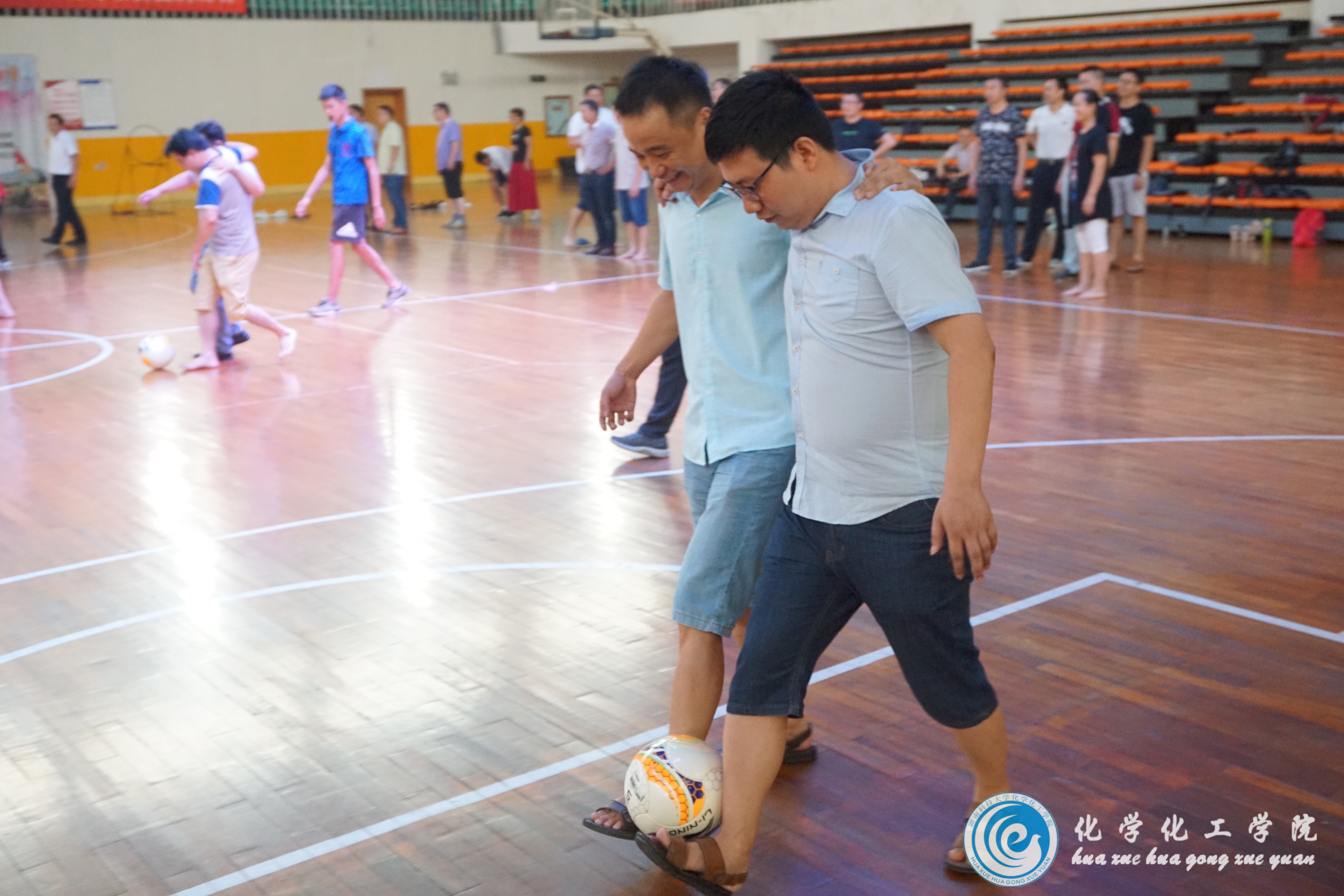 为增强教师之间的交流和友谊,公司于7月2日上午9:40在北校体育馆开展“破冰活动”,公司副经理陈述、班主任胡忠于、2018年“省培计划”高中化学学科骨干教师参与其中。本次活动的主题为团队游戏:场上各位老师根据自己所抽到的扑克牌的花色分为4组,并规定抽到J和Q的老师为裁判,抽到A的老师为队长。游戏环节中,各位老师倾力合作,一起完成任务,全场欢呼声不断。最后的颁奖环节将活动的气氛推向高潮,奖品设置十分惊喜有趣;大小不一的西瓜,给活动后炎热的老师们带来了清凉与甘甜。